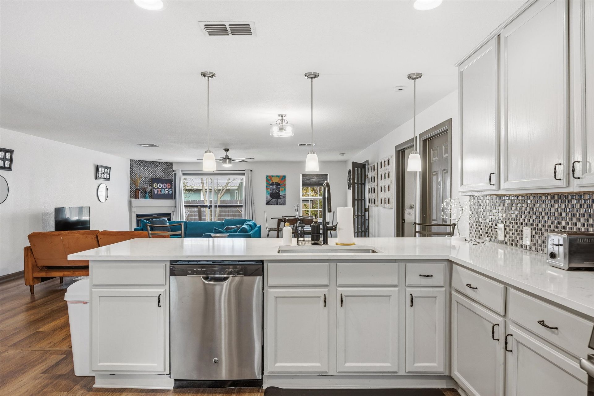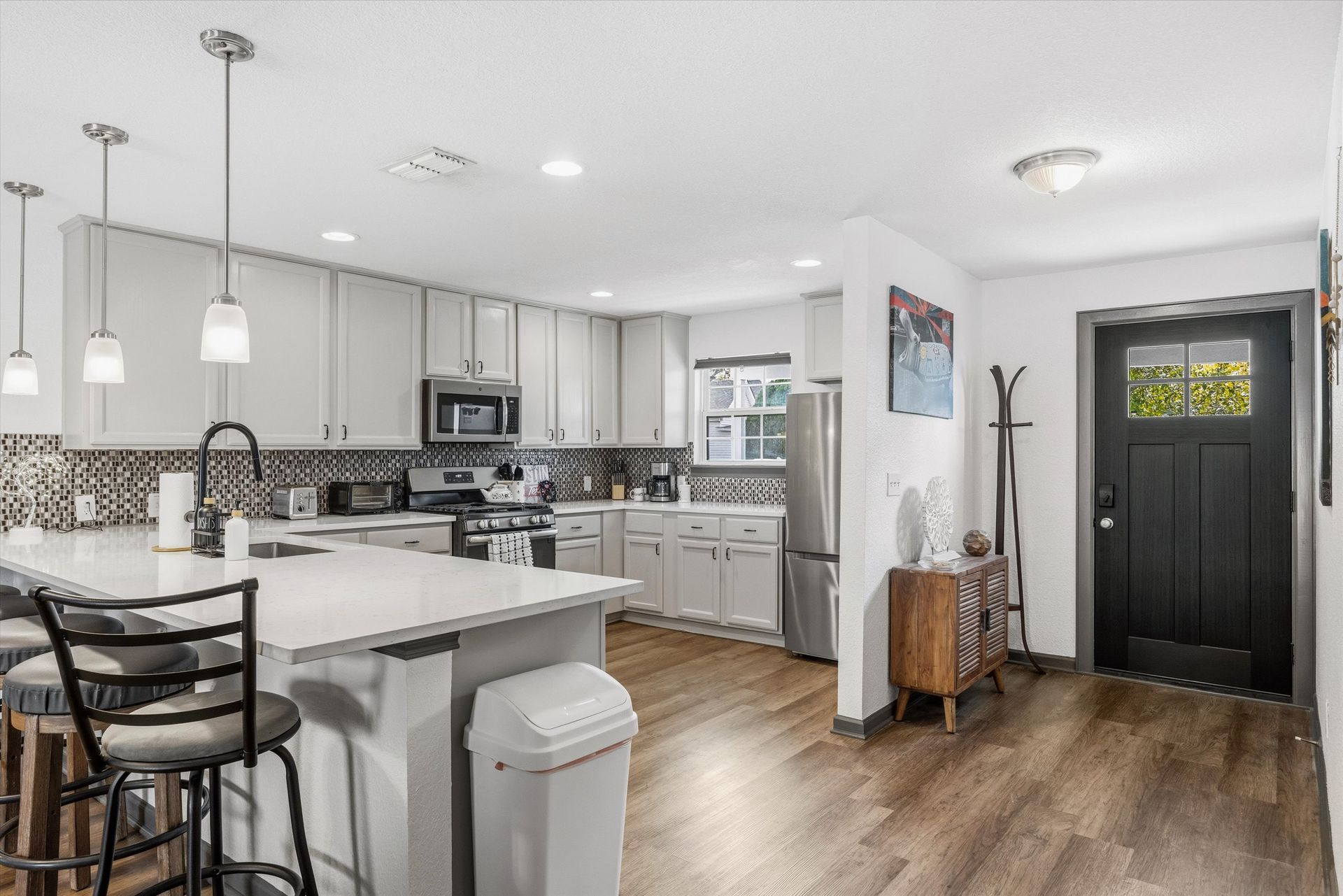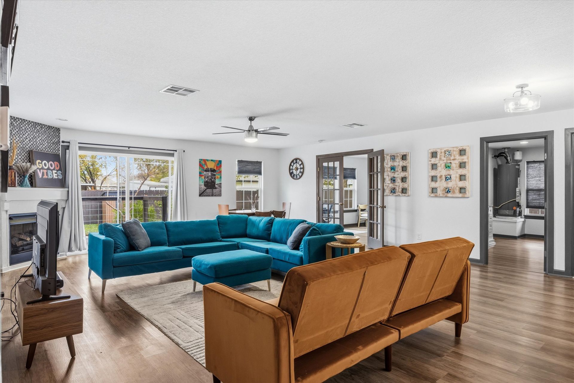 Welcome to The Hutto Haus—our spacious, beautifully appointed 3-bedroom, 2.5-bath retreat designed for up to 10 guests. With a king-sized master suite, flexible sleeping arrangements, stylish interiors, and an inviting outdoor firepit, this home offers everything you need for a comfortable and memorable stay. Located steps from Old Town Hutto, it’s the ideal hub for exploring local dining, shops, and events.